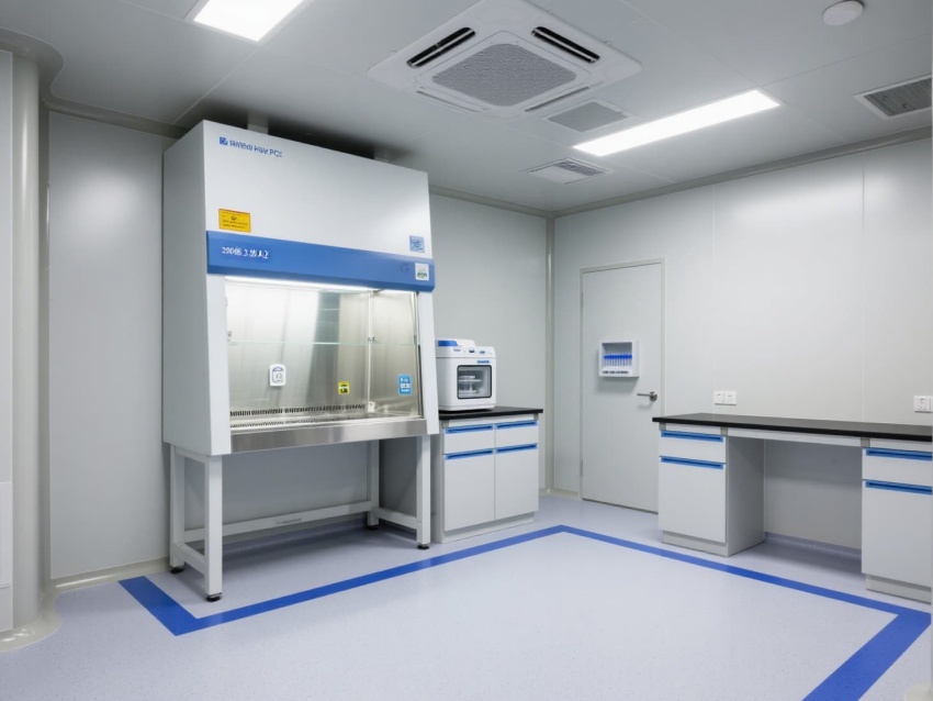 頂部高效過濾器與定向氣流系統維持每小時12-15次空氣置換,確保潔凈度達標。墻面嵌入式消毒裝置與紫外燈系統,可實現每日全方位消殺。實驗區配備負壓通風柜與生物安全柜,臺面采用耐腐蝕環氧樹脂材質,適配PCR反應的精密操作。