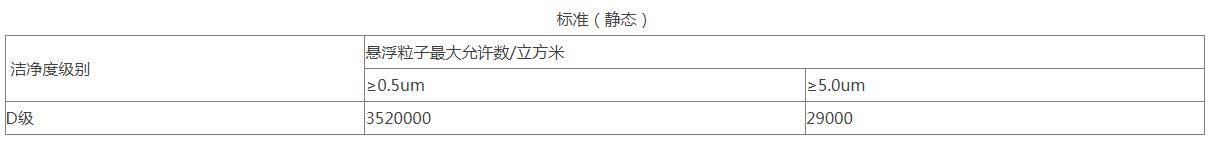 12、潔凈度靜態(tài)測試:在生產操作全部結束以后,全部操作人員撤出生產現(xiàn)場,經20分鐘的自凈后,進行空氣懸浮粒子的靜態(tài)檢測,并確定警戒限和糾偏限(分別暫定為法定標準的50%及80%)。制劑車間的潔凈級別為D級,在靜態(tài)情況下,靜態(tài)的標準為: