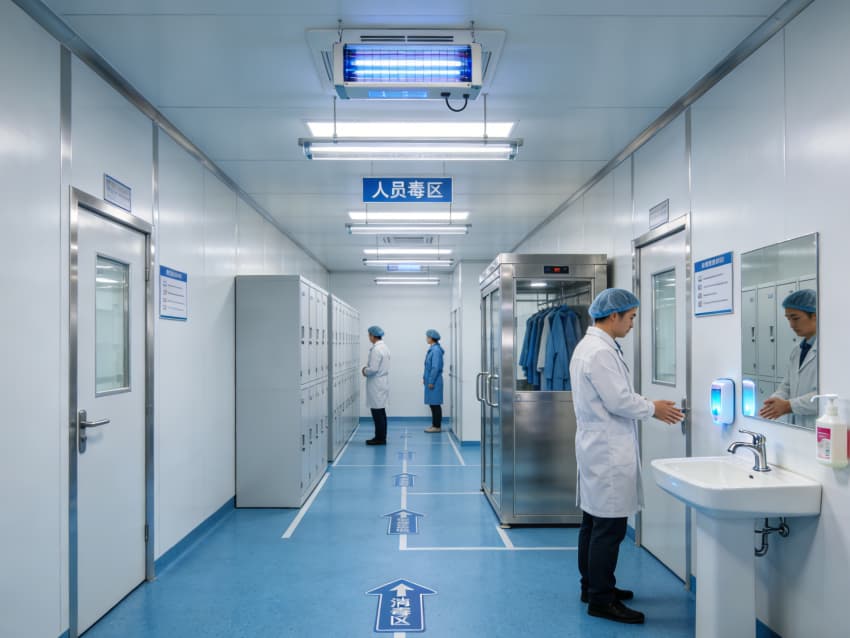 白色墻面采用食品級(jí)潔凈抗菌涂層,推行無(wú)縫拼接與高精度找直工藝,陰陽(yáng)角采用R50圓弧倒角設(shè)計(jì),徹底消除清潔死角,潔凈度穩(wěn)定達(dá)到Class 7級(jí)標(biāo)準(zhǔn)。廠房科學(xué)劃分無(wú)菌裝配區(qū)、滅菌區(qū)、檢測(cè)區(qū)等核心區(qū)域,各區(qū)域配備獨(dú)立層流凈化與負(fù)壓防護(hù)系統(tǒng),裝配區(qū)預(yù)留恒溫恒濕調(diào)控接口,滅菌區(qū)設(shè)置專用物料傳遞通道,全方位保障生產(chǎn)全流程的無(wú)菌性與合規(guī)性,為高品質(zhì)無(wú)菌醫(yī)療器械生產(chǎn)筑牢環(huán)境基礎(chǔ)。