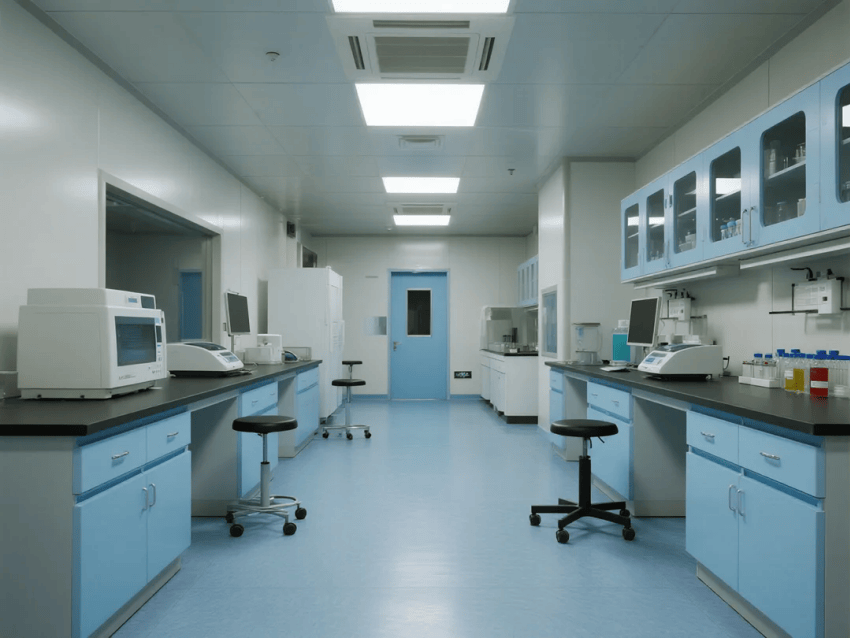 墻面采用深海藍抗菌彩鋼板,反射率精準控制在35%-40%