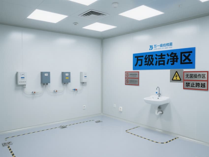 空間內(nèi)配備不銹鋼潔凈門(mén)窗與雙扉傳遞窗,均采用高氣密性密封結(jié)構(gòu);嵌入式LED潔凈燈提供300-500lux均勻照明,無(wú)眩光設(shè)計(jì)保障操作精度。恒溫恒濕系統(tǒng)精準(zhǔn)控制溫度(20-24℃)、濕度(45-60%),藍(lán)色功能標(biāo)識(shí)線清晰劃分操作動(dòng)線,全方位營(yíng)造安全、穩(wěn)定的萬(wàn)級(jí)無(wú)菌環(huán)境。