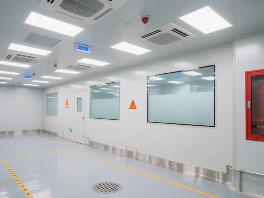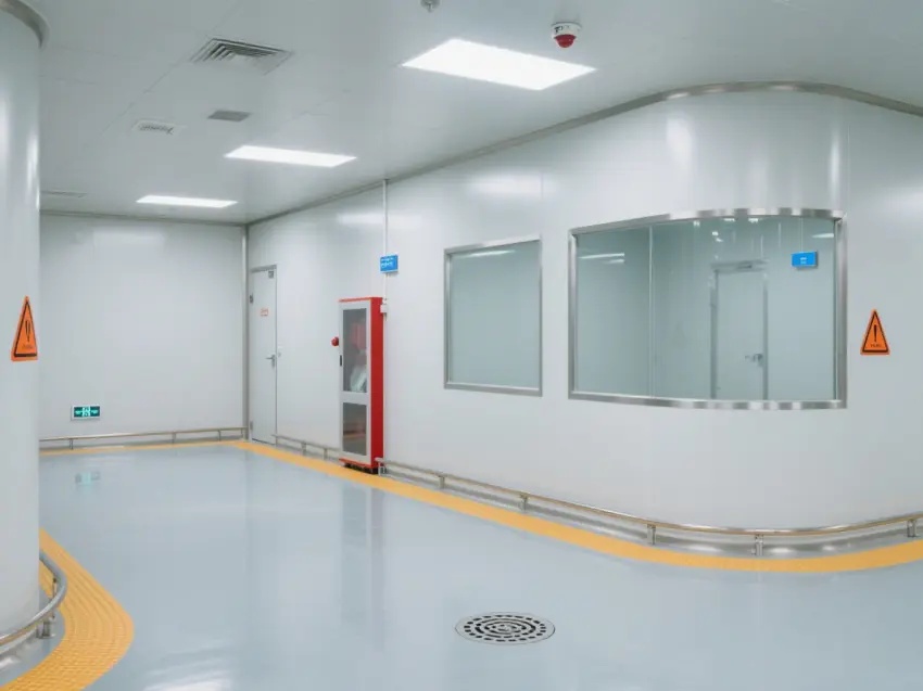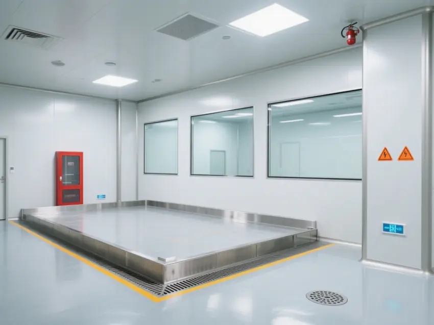 整個車間以白色為主色調(diào),營造出干凈、整潔的氛圍。地面是光滑的淺灰色,帶有黃色的警示線,確保人員行走安全。車間內(nèi)的墻壁和天花板都采用了平整的設(shè)計(jì),便于清潔。