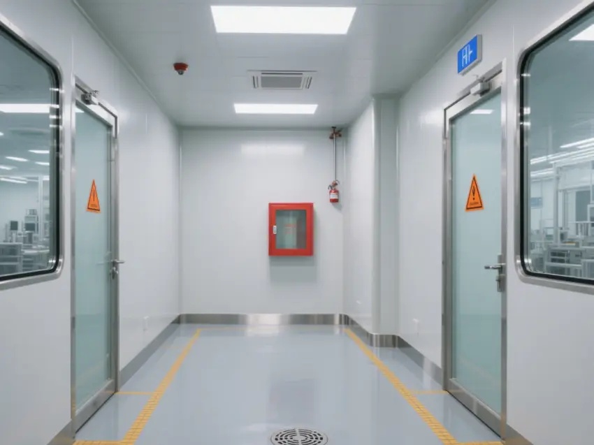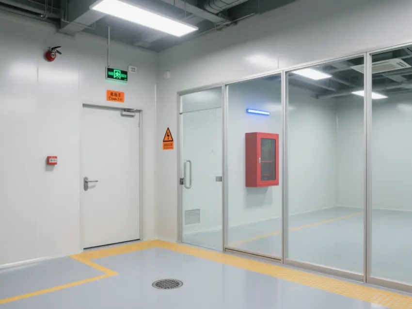 車間內(nèi)配備了多個紅色的消防箱,確保消防安全。墻壁上還設(shè)有緊急出口標(biāo)志,為人員在緊急情況下提供指引。車間內(nèi)的門大多是玻璃門,便于觀察內(nèi)部情況。