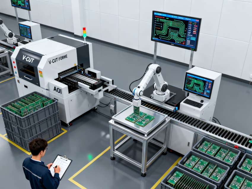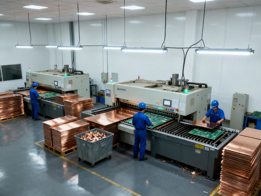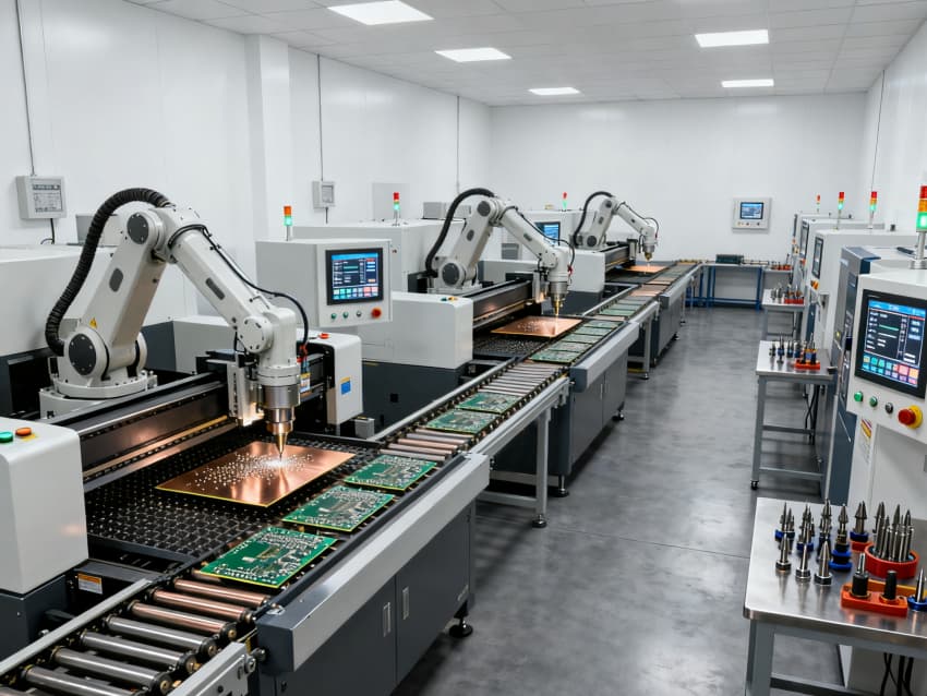 各車間功能定位清晰,適配全生產鏈路:基板裁切車間預留大型裁切設備安裝位,空間開闊便于物料轉運;光刻車間采用密閉式布局,預留恒溫恒濕及避光系統接口;蝕刻車間強化通風管道預留,適配酸堿試劑使用需求;鉆孔車間預留高精度鉆孔機安裝基礎,地面做防震處理;阻焊車間側重潔凈防護,預留噴涂設備工位;成型車間規劃物料緩存區與成品檢測區;測試車間預留各類檢測儀器接口;包裝車間劃分潔凈包裝區與周轉區。