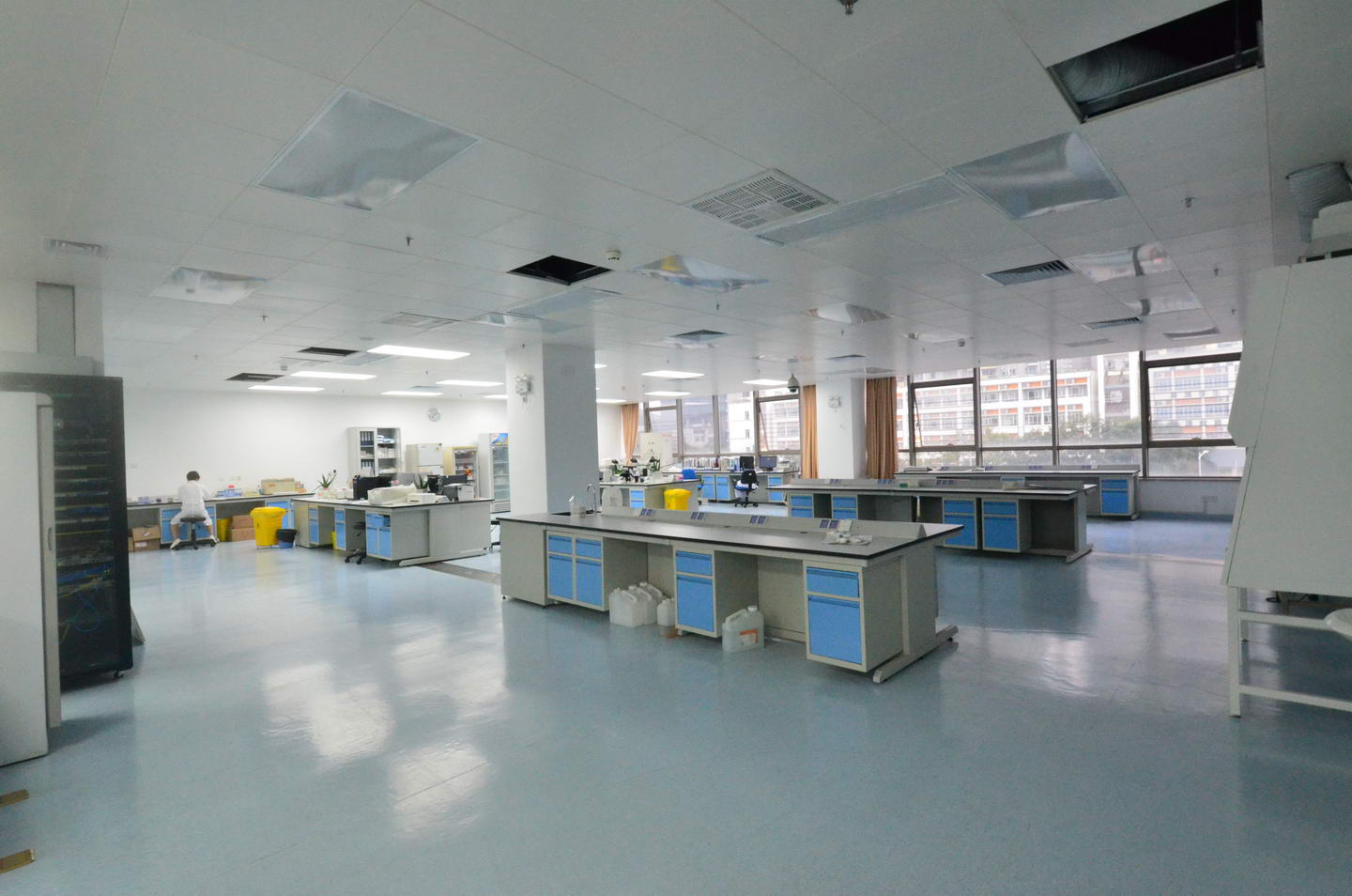 2、實驗臺面材質(zhì)主要由實芯理化板、環(huán)氧樹脂板和千思板,因檢驗科實驗室使用的高溫設(shè)備不多,推薦使用實芯理化板臺面和千思板臺面。